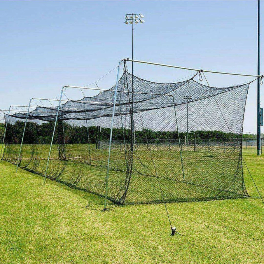 The Cimarron #24 Batting Cages are constructed of twisted knotted twine which makes these batting cages very strong. Each fiber is treated with TWO chemicals to protect the premium polymer blend (polyethylene) against the sun and enables the netting to retain its strength for a longer period of time.