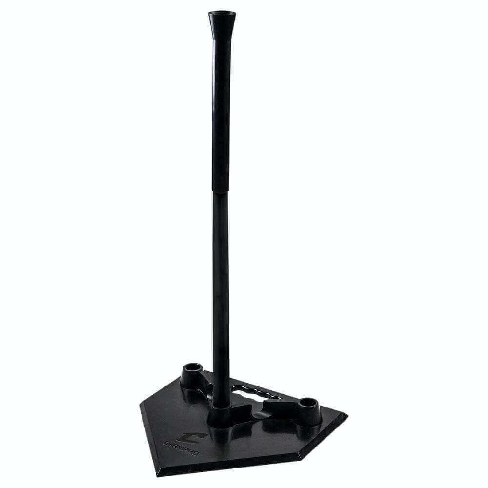 This tee sits on a sturdy rubber plate with 3 hitting positions and is easily adjustable with pushpin adjustments on the PE tubes. The ball sits on a flexible rubber top that is tough and resilient. When practice is over, the tubes snap onto the plate, which has a handle, making it easy to transport.