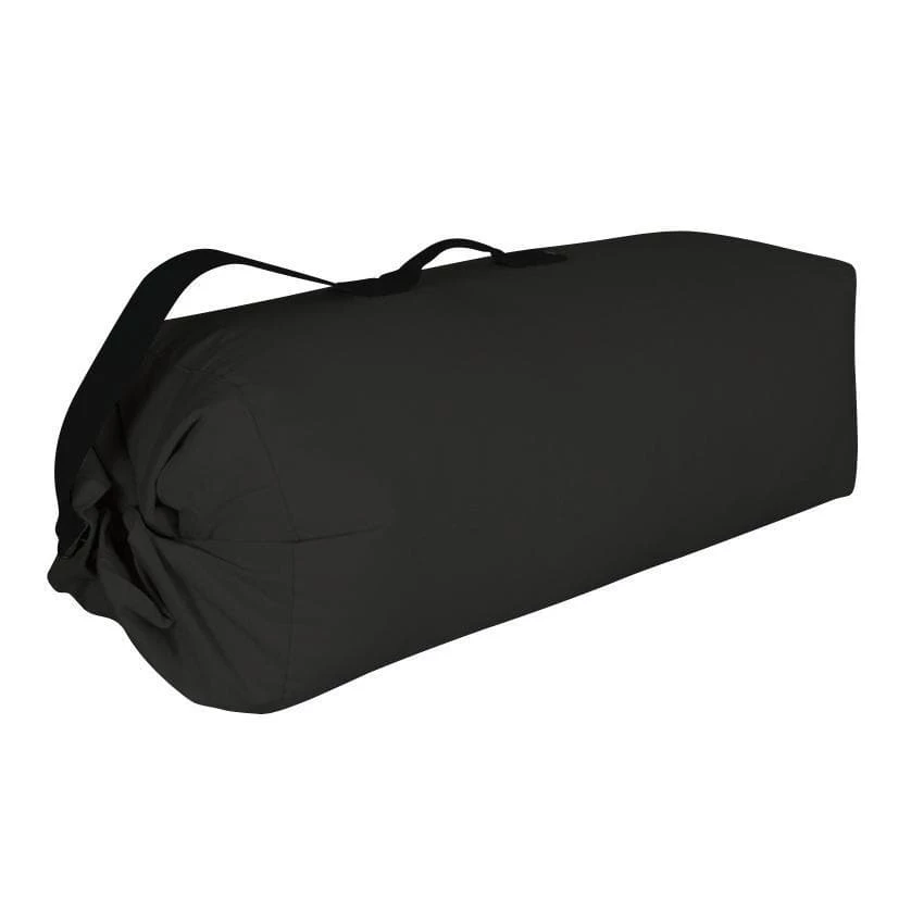The handle and shoulder strap are fastened to the canvas bag by steel rings for durability, and make it easy to transport and stow, while the clip closure keeps everything in place