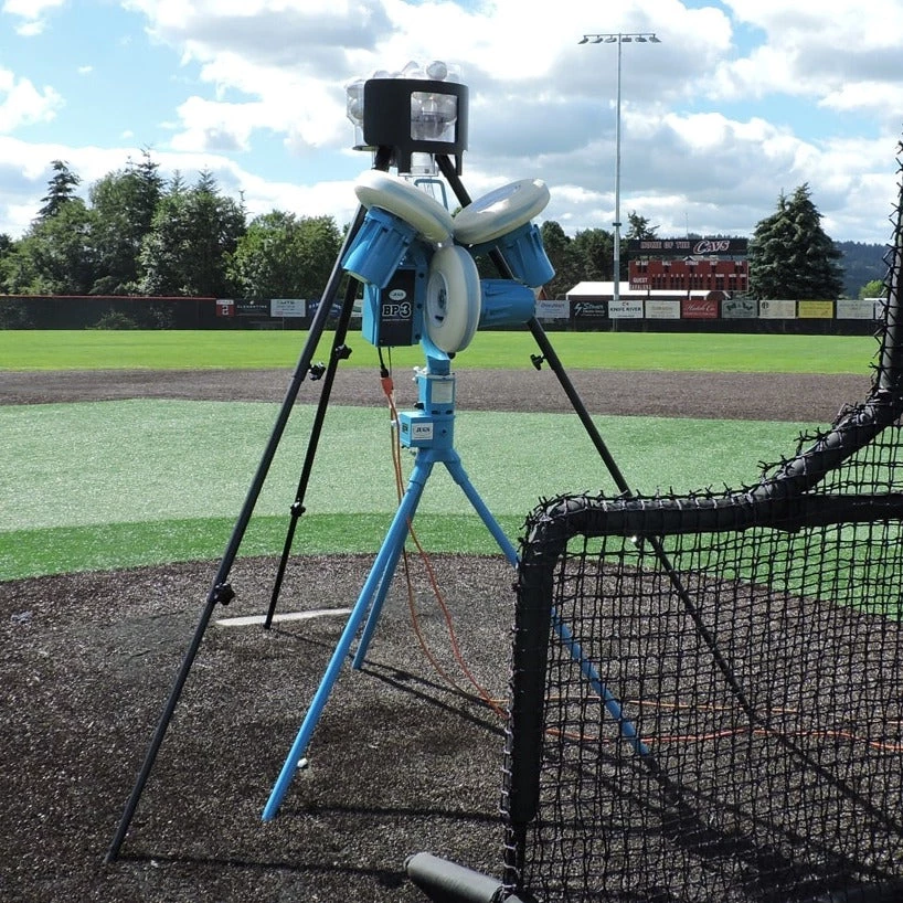 When using an automatic feeder, a protective screen must be used to protect the feeder and pitching machine from batted balls.