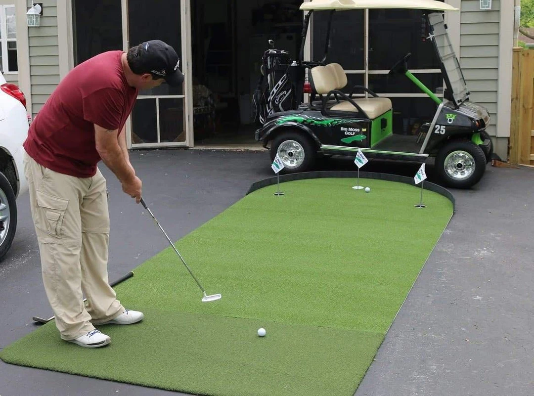 The Big Moss Commander Putting & Chipping Greens is suited for both indoor and outdoor use.
