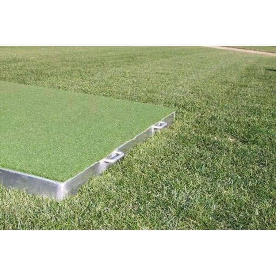Protect your field during batting practices. Made of reinforced aluminum, the platform is made with spike-resistant turf and has wheels for easy transport without tearing up surfaces.