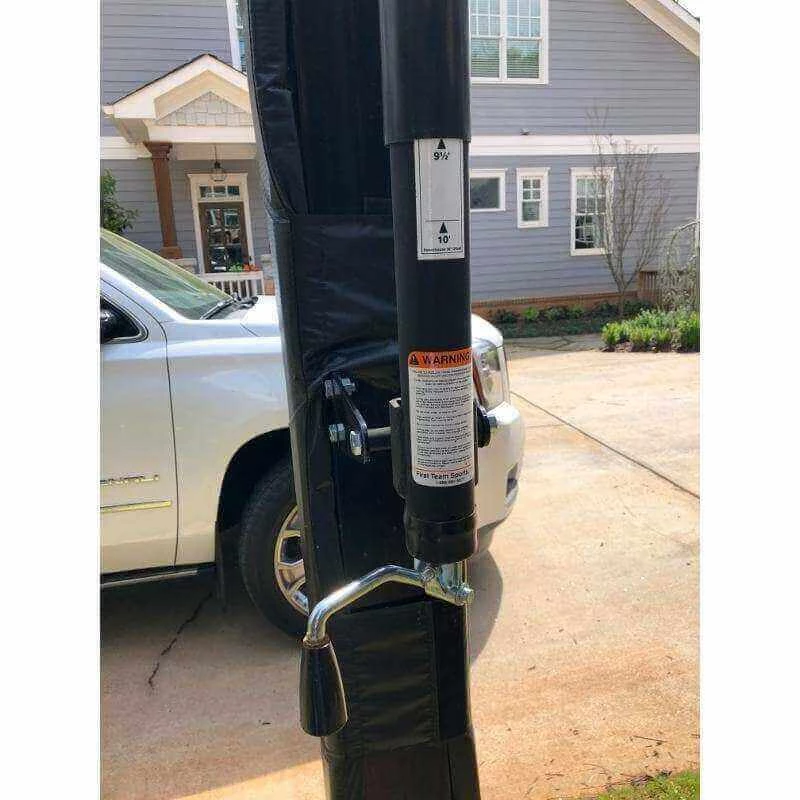 The unit is built with a one-piece 5″ x 5″ vertical post that incorporates our bolt-down anchor base for ease of assembly and relocation. The rim height is infinitely adjustable by simply turning the EZ Crank handle. The rim height indicator shows the height of the rim. Our Y-shaped extension arms and steel perimeter framed tempered glass backboard combine with First Team’s exclusive CLEARSPAN backboard mounting making PowerHouse Adjustable Basketball Hoop the most powerful and aesthetic units available in their price range! For additional safety, pole padding and backboard padding can be added to any PowerHouse Adjustable Basketball Hoop package.