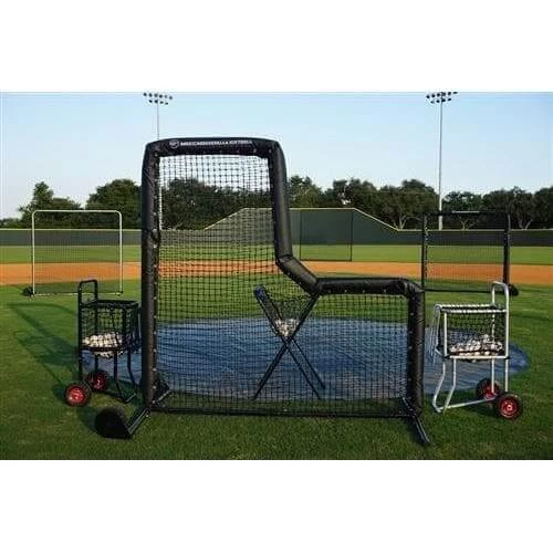 The BP Pro Package comes with a batting practice L-Screen, first and third base field screens, a behind second base field screen, and a ball cart. Please call for a different variety of screens and ball carts, such as the picture shows.