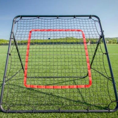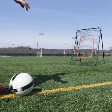 From the backyard to the practice field, the CFR-1 Rebounder is ideal for enhancing first touch and reaction time. This rebounder features a black steel frame with a polyethylene net that attaches with bungees. The rebound surface features an adjustable angle and center target for more precise training. Weighing only 12 lbs., transportation of this rebounder is effortless. Four “J” style anchors are included.
