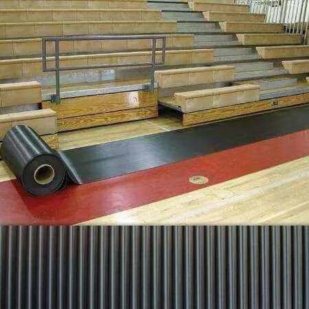 Heavy-duty black corrugated vinyl provides safety & protection in high traffic areas. Perfect for use in gymnasiums, doorways, across track surfaces, & in front of bleachers.Mats are 4’W x 105’L x 1/8” thick.