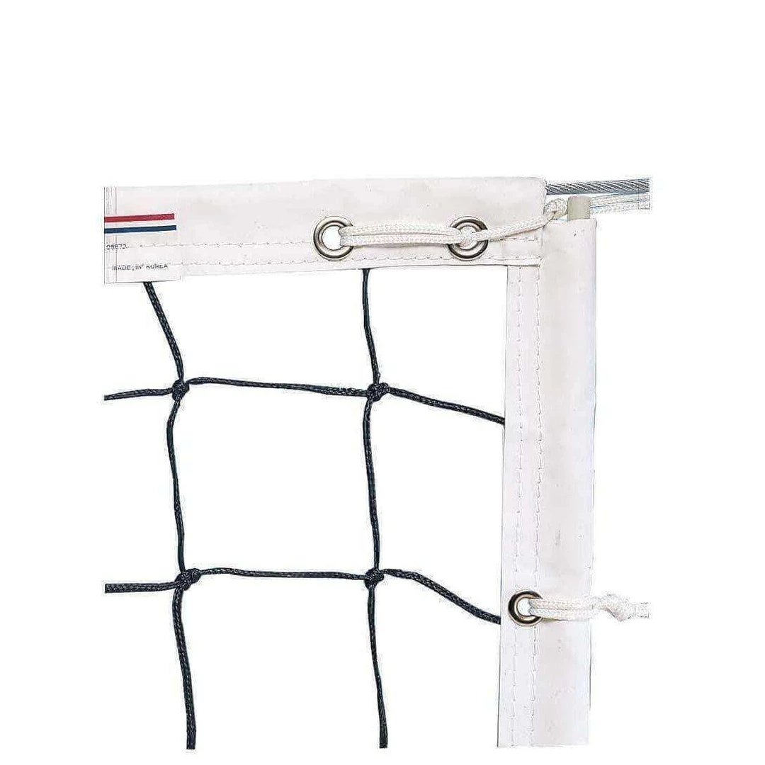 The unique pin-lock mechanism allows posts to adjust to Men”™s (7″™ 11 5/8″), Women”™s (7″™ 4 1/8″), and Junior”™s (7″™) net heights. The ratchet winch easily sets net tension and 5-point net attachment makes set-up quick and easy. Locking collar securely holds net in position. Bottom of uprights feature adjustable, non-marking pads. Upright safety pads included with choice of 14 different colors.