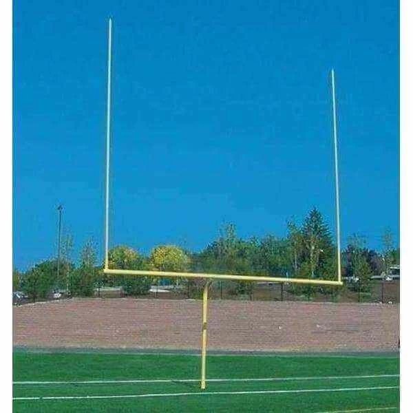 This football goal post offers semi-permanent/permanent single post design which meets all NFHS specifications with a crossbar measuring 23′ 4″. Painted yellow or white.