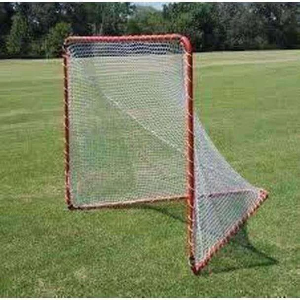 Official size: 6’H x 6’W x 7’D. Meets all NCAA and high school specifications. Orange powder-coated frame for maximum protection. Uprights and crossbars feature 2″ HD galvanized steel. Goals features one-piece welded face, mitered corners and lacing rail. 3/8″ thick flat steel ground bar keeps goal extremely stable. Each goal includes HD 7mm nets and lacing cord. Sold as pairs.